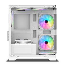A compact white mid/mini tower chassis supporting mATX and Mini-ITX motherboards with tempered glass front and side panels for a clean and modern showcase build. Zolpa Store+2KVR Gaming System+2