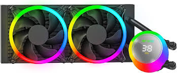 Supports a wide range of Intel and AMD sockets including LGA1700 & AM5, and includes a built‑in CPU temperature display on the pump head plus ARGB lighting for pump and fans. Newsmart Computer+1